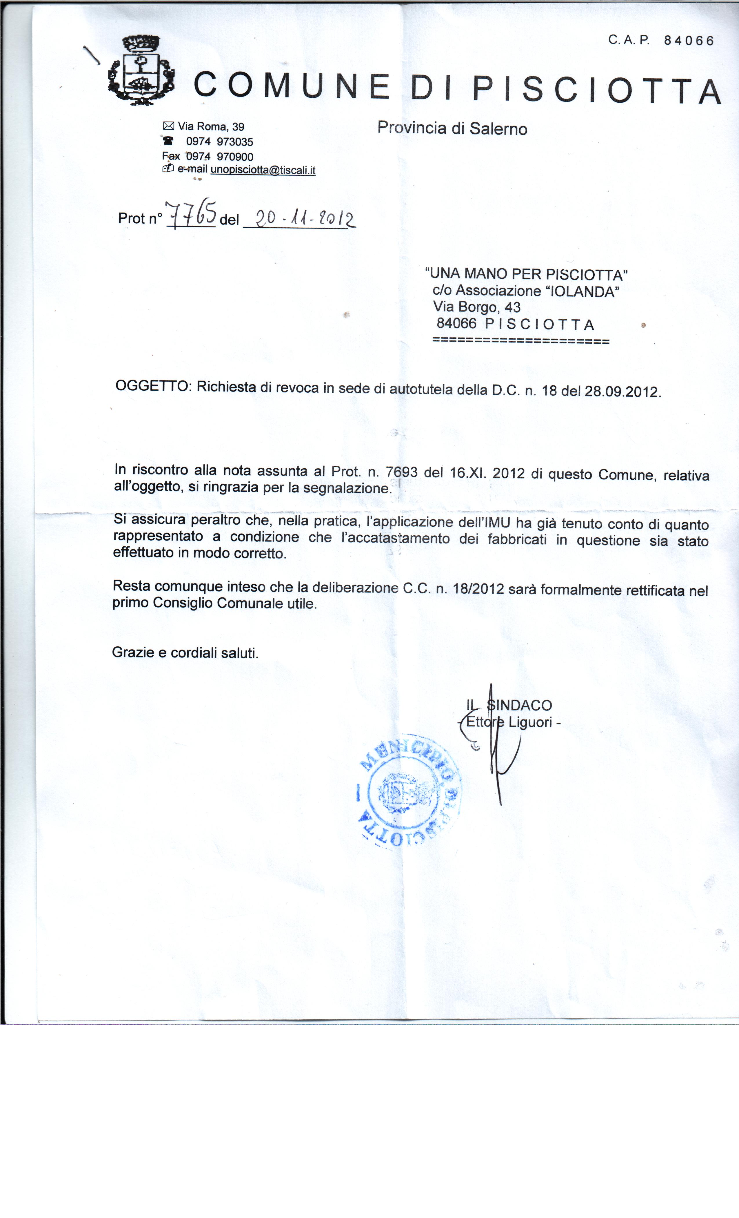 Revoca della Delibera Consiliare n 18 del 28/09/2012 inerente la tassazione “illegittima” dei fabbricati rurali ad uso strumentale.
